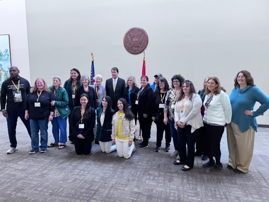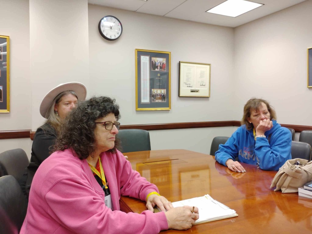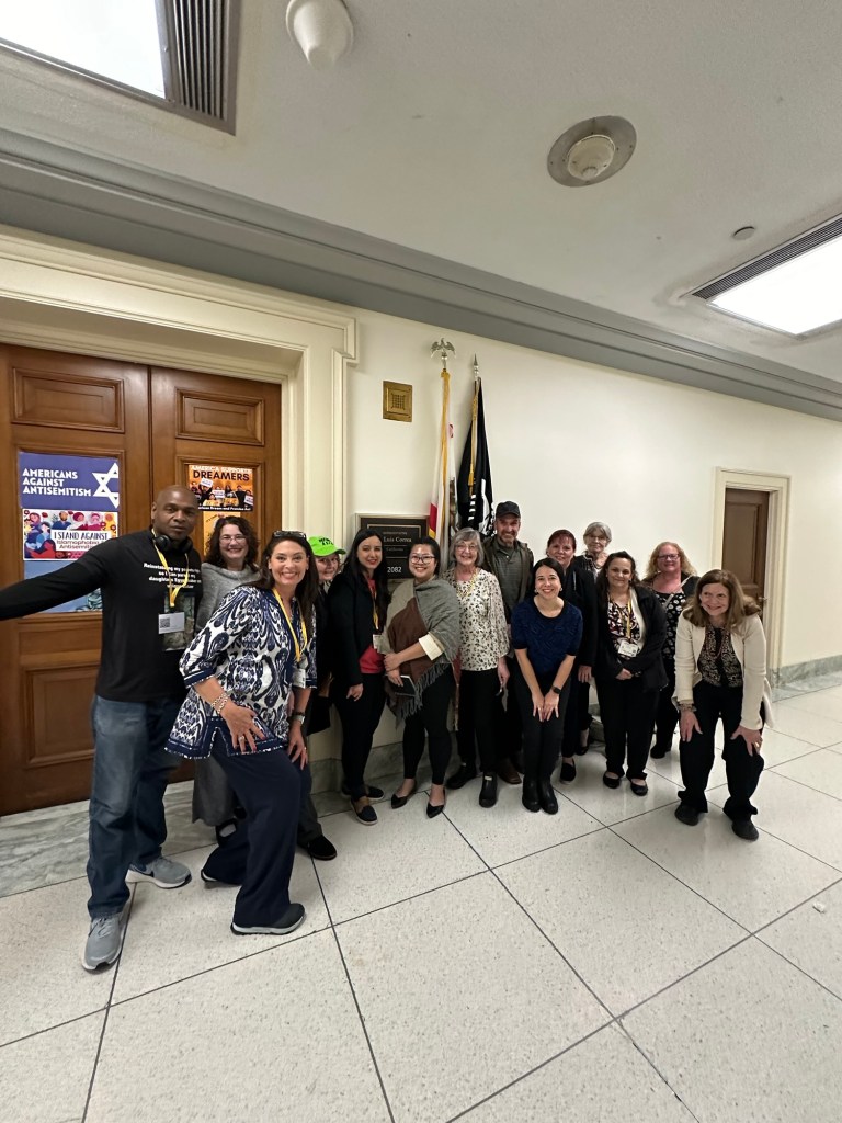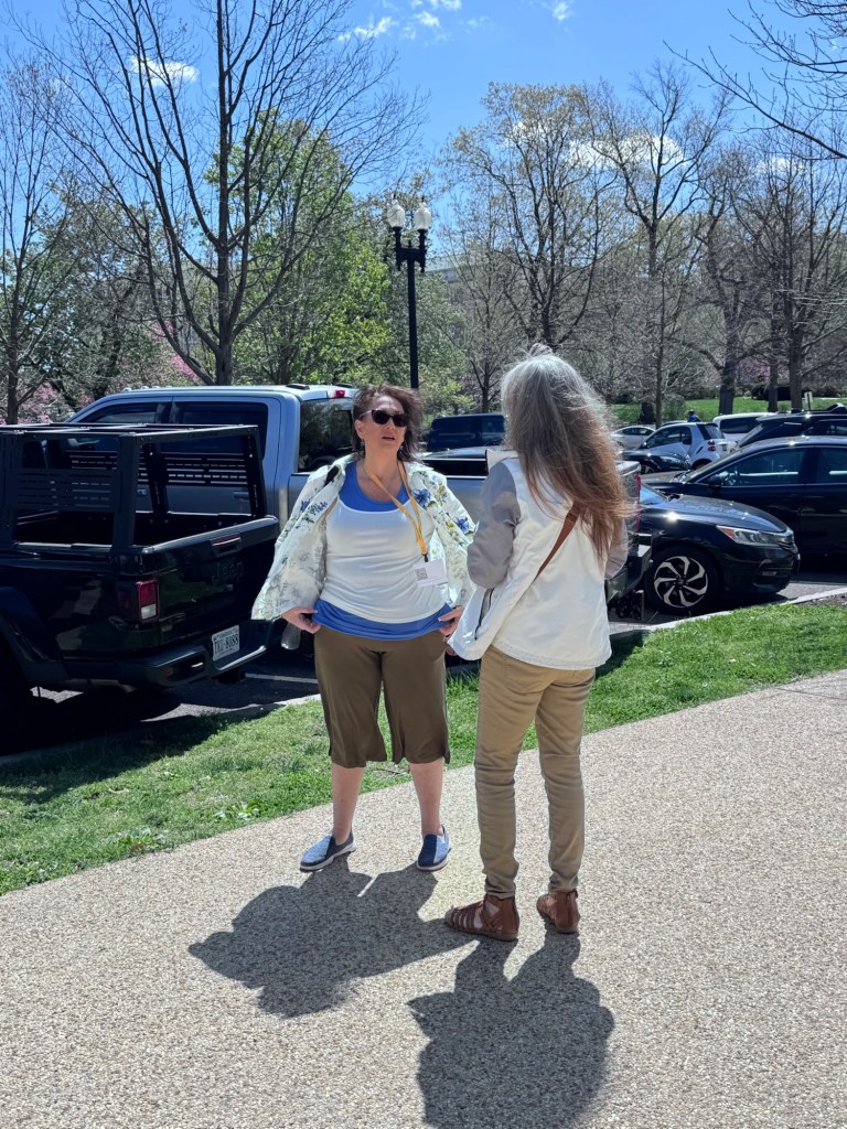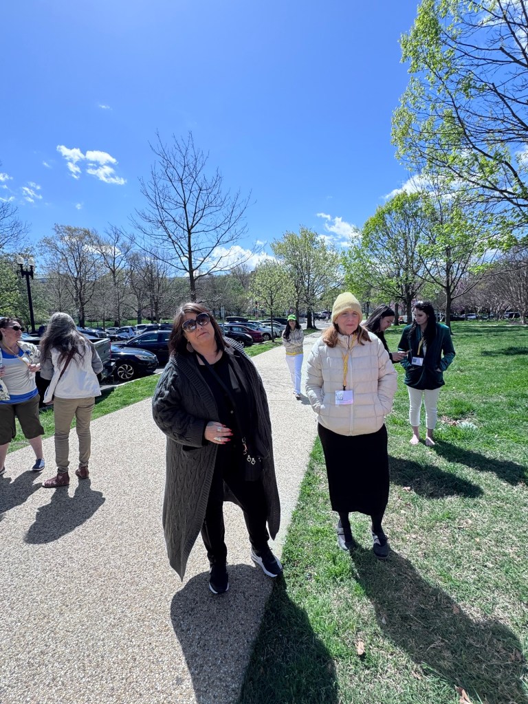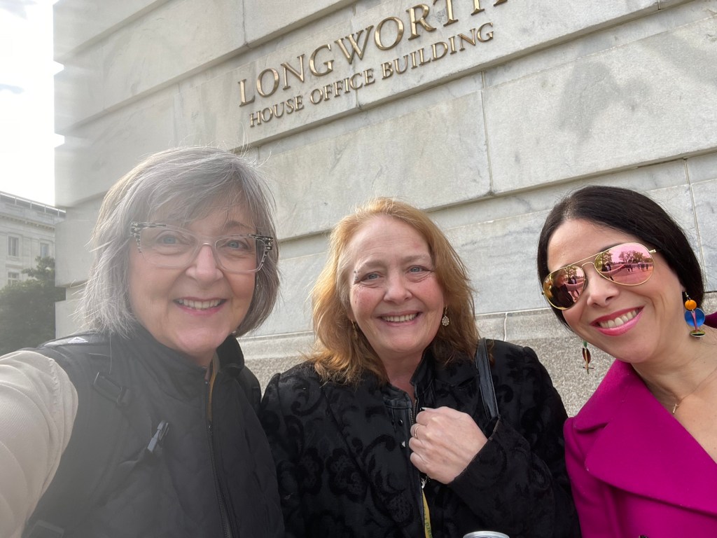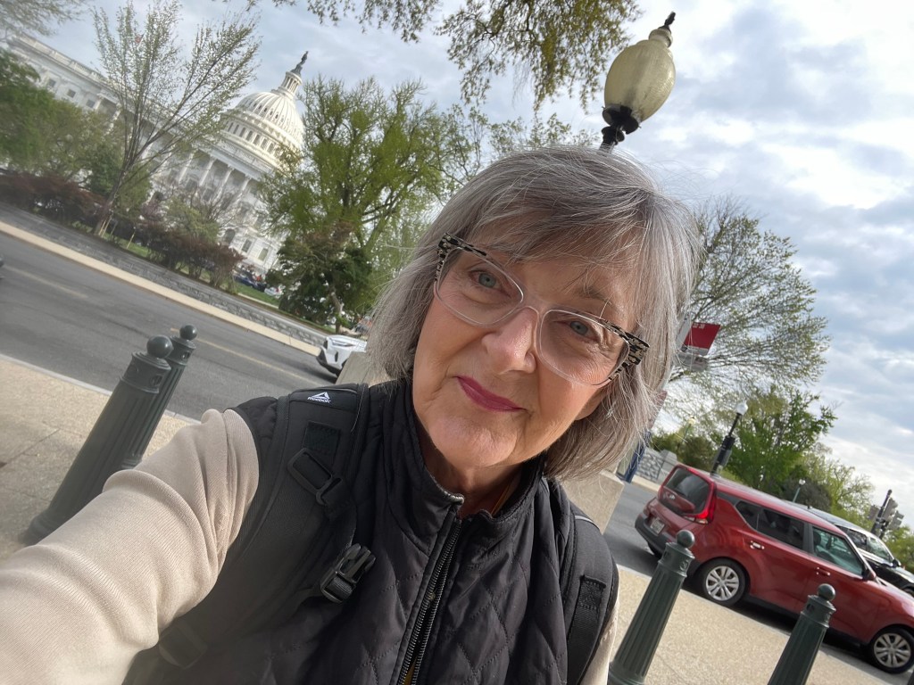 Okay I made it to DC. Up at 4. Nashville. Atlanta. One hour to get a coffeee at the airport. Second leg of flight sat by the baby. I always chose the baby. After all I am a grandma. Her daddy is a lobbyist. That was convenient. Got a grumpy flight attendant who told me he did not have time for me. I was rescued by the man across the aisle. I try to stay invisible when I fly. I don’t want to be the person that the crew talks about later…”there was that one woman…”. Rescue stranger also has vitiligo so we engaged in a brief exchange while unloading the plane. Reagan in its usual packed noisy chaotically organized frame of mind. Waiting for our Alabama warrior Terri LaPoint before we head across the bridge. Let’s see what this week holds.